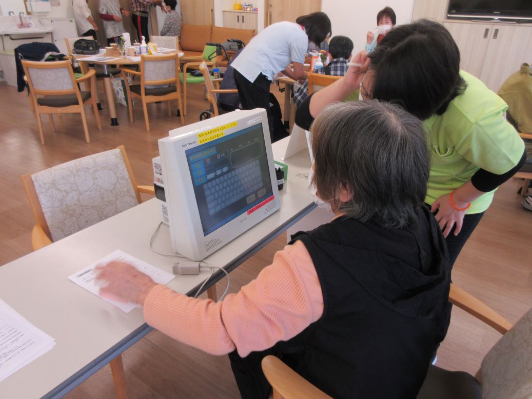 今月は10月という事で、健康にちなんだ健康チェックと、体力チエックを実施いたしました。