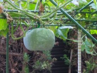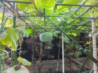 中庭 冬瓜(かんぴょう)が実っています。