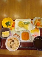 食欲増進を兼ねて予め館内放送でお知らせさせていただきました。皆様、美味しかったと完食😋です。食べる事は楽しみのひとつでもあるので厨房さんにはいつも感謝です。