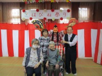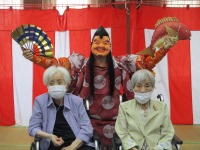 当日はボランティアでギターサークル:チューズデイ様に駆けつけて頂き、素晴らしい歌とギターのハーモニーを披露され、入居者様も一緒に歌を口ずさんでおられました。鈴張神楽団様には恵比寿舞を披露して頂き、太鼓の音に合わせて入居者様も体を揺らしておられました。また各フロアの出し物もあり、終始笑顔で過ごされていました。