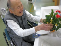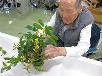 玄関に飾ろうと活けていたら、入居者様が「もっと葉を落とすんだ。」「もっと背を短くしないと。」とアドバイスをしてくれました(#^^#)
