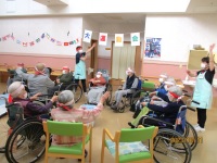 こんにちは、デイサービスです。今日は南橘ハーモニカクラブの皆さんが「みんなで歌うハーモニカコンサート」の演奏に来てくださいました(^_^)「里の秋」「赤ふるさと」「手のひらを太陽に」等の童謡、唱歌や「喜びも悲しみも幾年月」「上を向いて歩こう」等の歌謡曲を1時間たっぷり演奏してくださり、ハーモニカ演奏に合わせてご利用者様も歌を楽しそうに口ずさんでいらっしゃいました。「懐かしい曲ばっかりで楽しかった。」「私の好きな曲ばかりだったよ。」等嬉しい感想を聞くことができました♪南橘ハーモニカクラブの皆様、ありがとうございました(*^_^*)