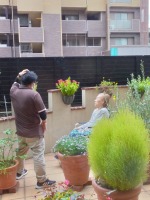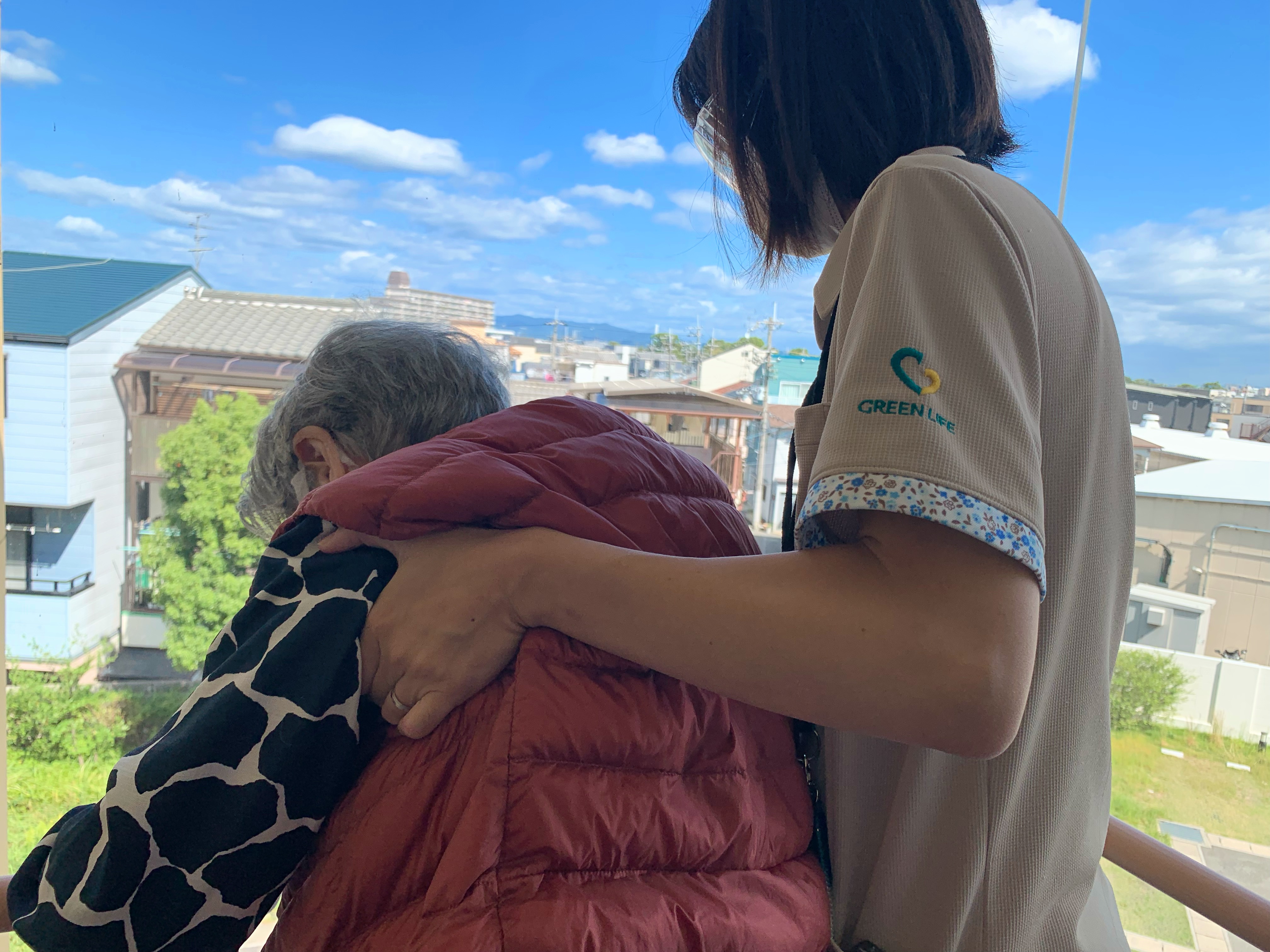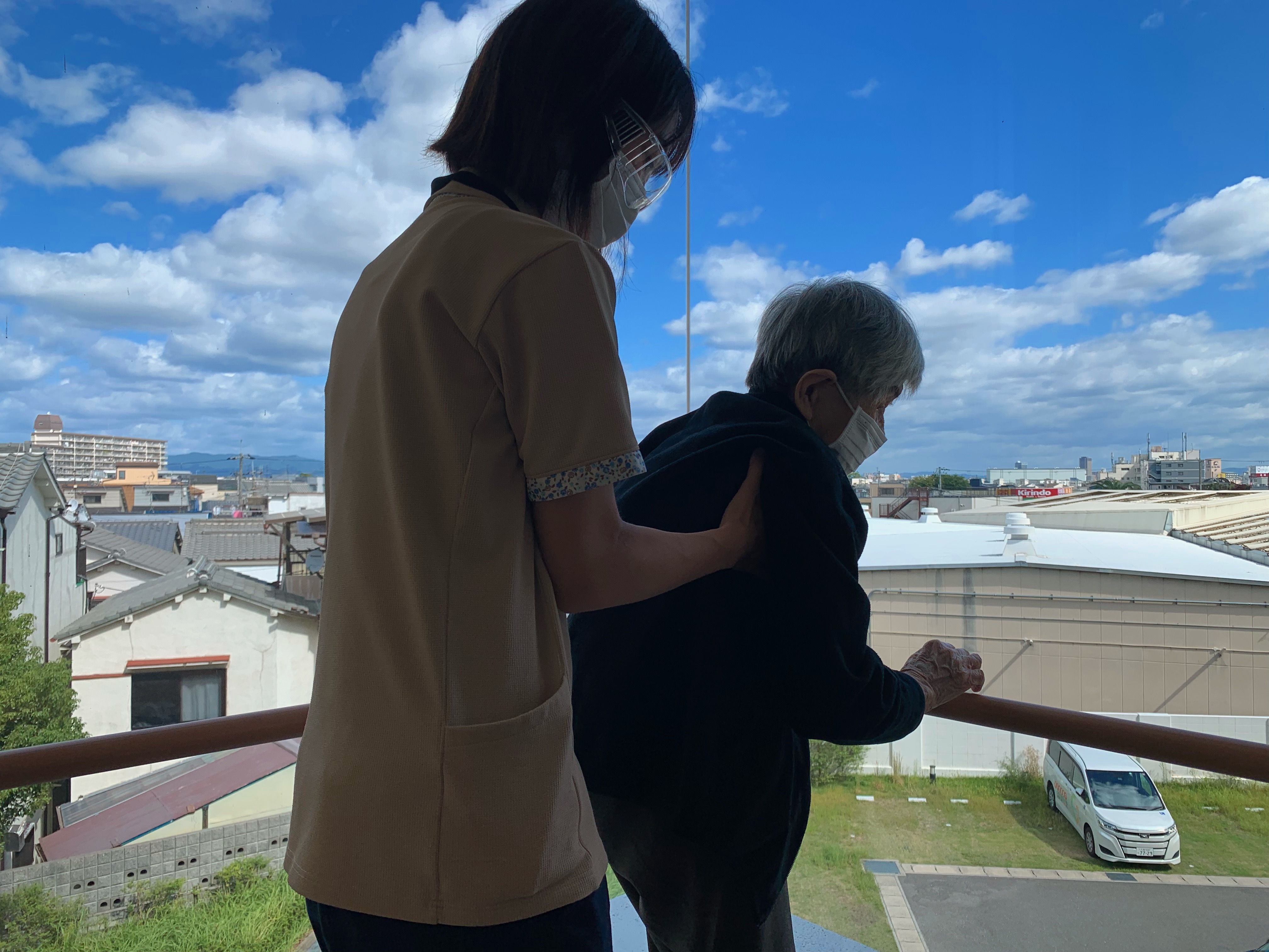 ご自身で外に出ることも叶わない、それなればとリハビリスタッフも一緒に、外でマッタリとした時間を過ごされておりました〜
