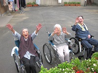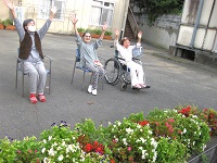 日向ぼっこをして頂きながら、お風呂をお待ち頂いてます。