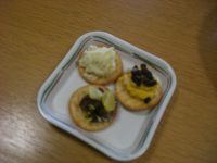 ご用意しました。お好きな具材を選んで、クラッカーにのせて頂きました。