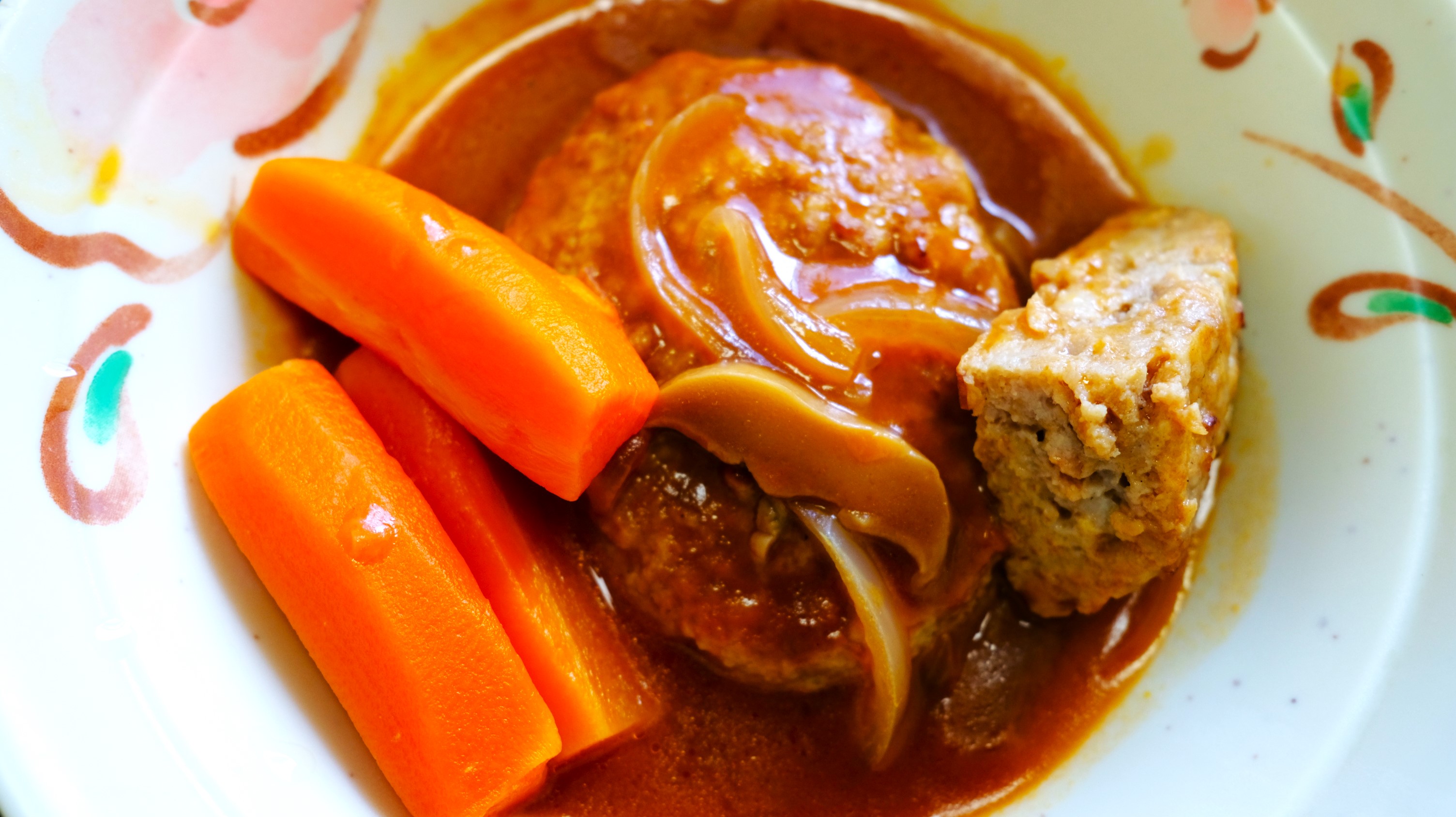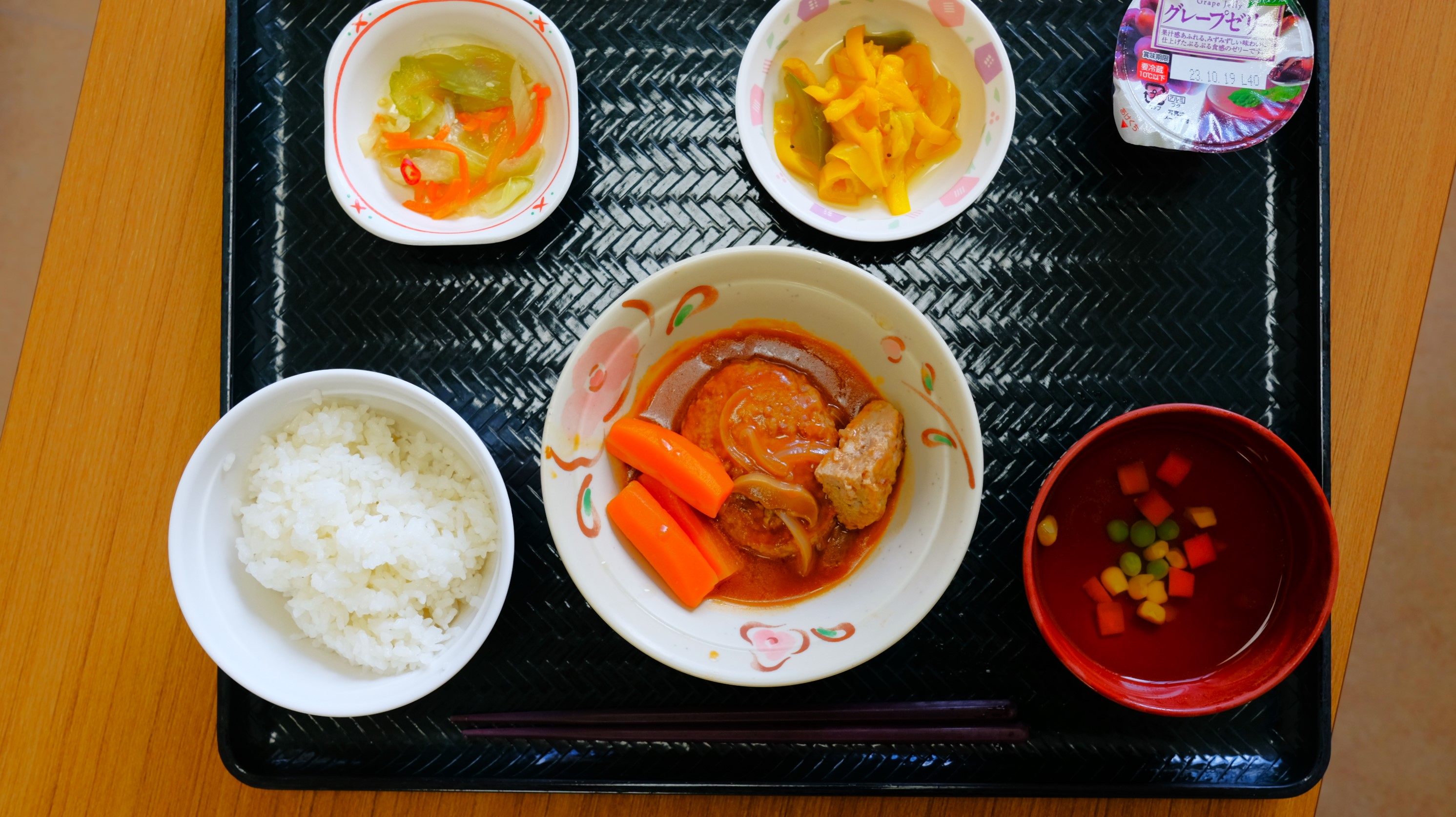 献立のメニューは、豚肉のマスタード焼きと里芋の胡麻味噌煮、小松菜とあさりの辛子和えです。