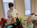 髪の毛の相談だけではなく、日常的なちょっとした会話を楽しめるのも、訪問理容のいいところですね。「そんなに伸びるほうじゃないから、今回はこれぐらいにしておくね。」「少し癖っ毛だから、次はパーマをかけるといいですね。」などと、髪のアドバイスもしっかりいただいて、入所者様も大満足。サロンタイムはリフレッシュできる特別な時間ですね💛