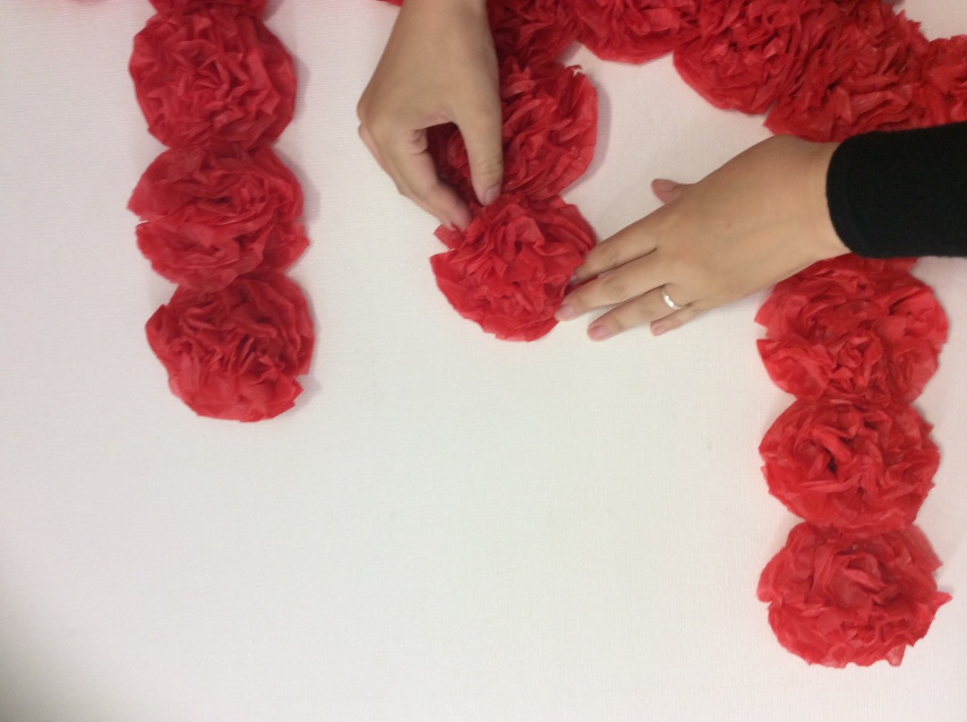 こんにちは、デイサービスです。今日は先週からの続きでハロウィンリース制作を行いました。カボチャのジャックオーランタンとリース部分はすでに作ってあるので今日は折り紙でコウモリ作りに取り組んでいただきました。続いておばけやキャンディ等の折り紙のパーツを使ってリースにご自由に飾り付けをして完成です。完成作品はしばらくデイルームの壁面に飾らせてもらうことにしました(*^_^*)デイルームが華やかになったと好評です♪
