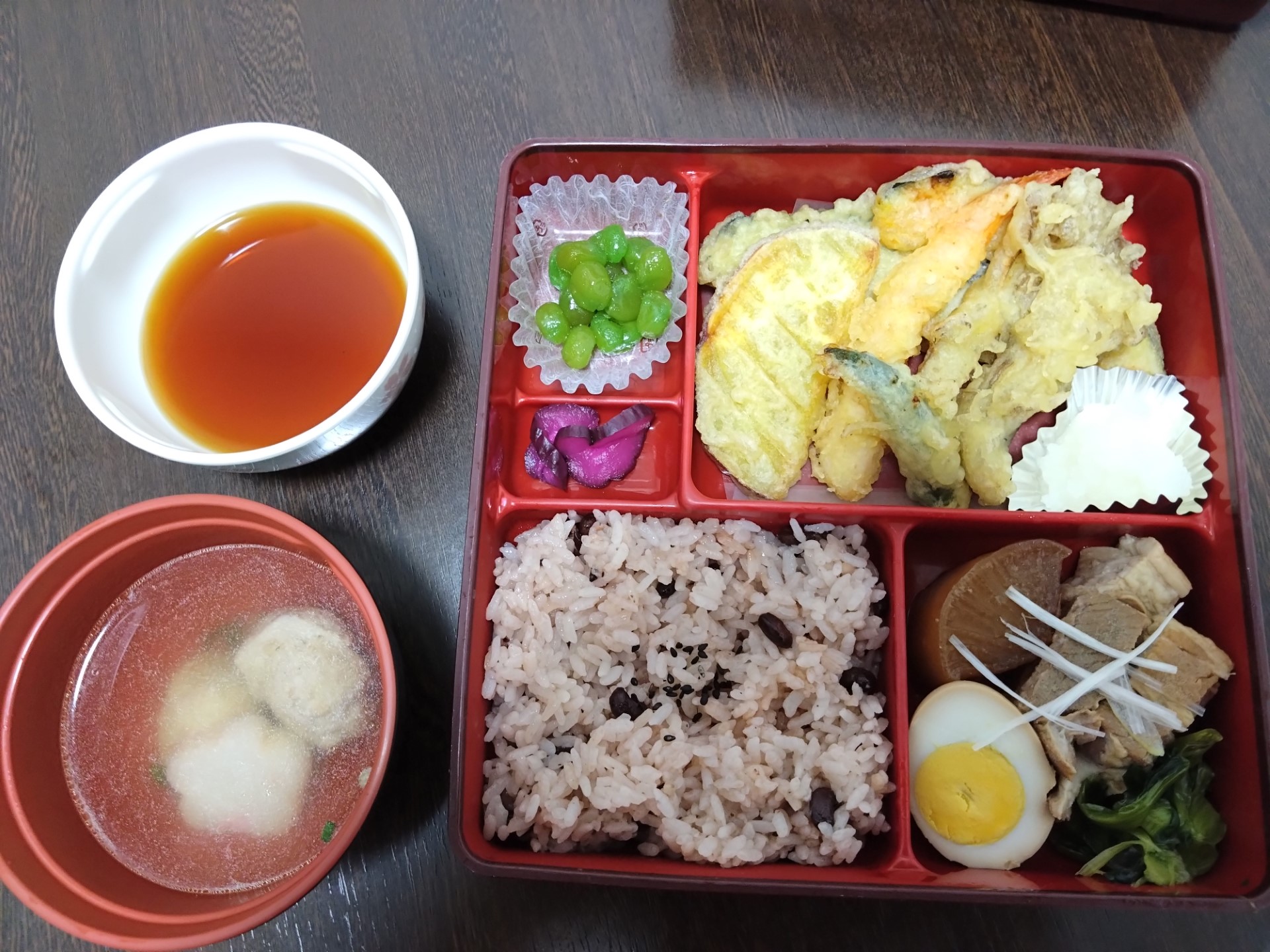 秋の天ぷら(エビ・鰆・舞茸・さつま芋・南瓜・オクラ)