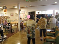 テーマは「お風呂」ご入居者様は殆どの方が面白かったと仰っていました。おやつの時に「男の人の裸ばかり出たわね」「たまにはそんな刺激もいいものよ」なんて会話をされている女性陣!笑いが広がっていました( ´艸`)