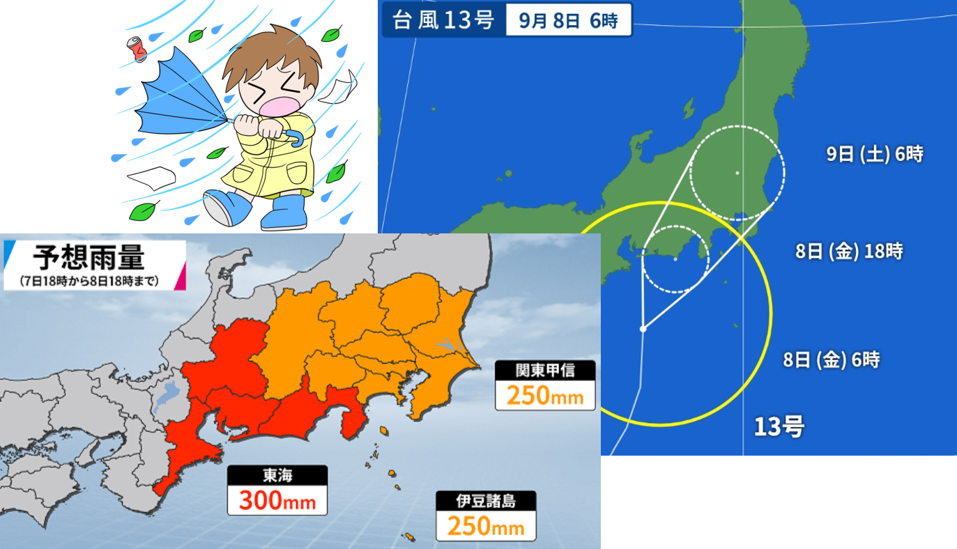 外出する方は風で傘が飛ばされ易かったり、車は視界が悪いなど悪条件になりますので普段以上に注意しましょう。