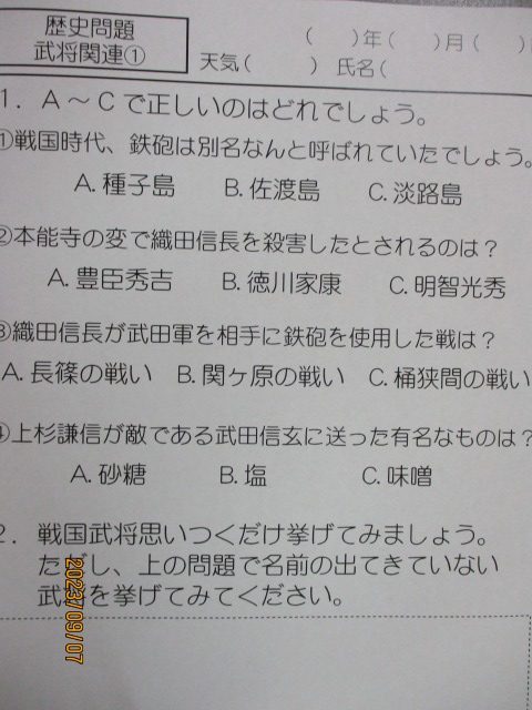 明日のあたまの体操の問題を紹介します♪ こちらは『歴史問題』です! 武将関連の問題なので楽しみながら回答してくださいね(^_-)-☆