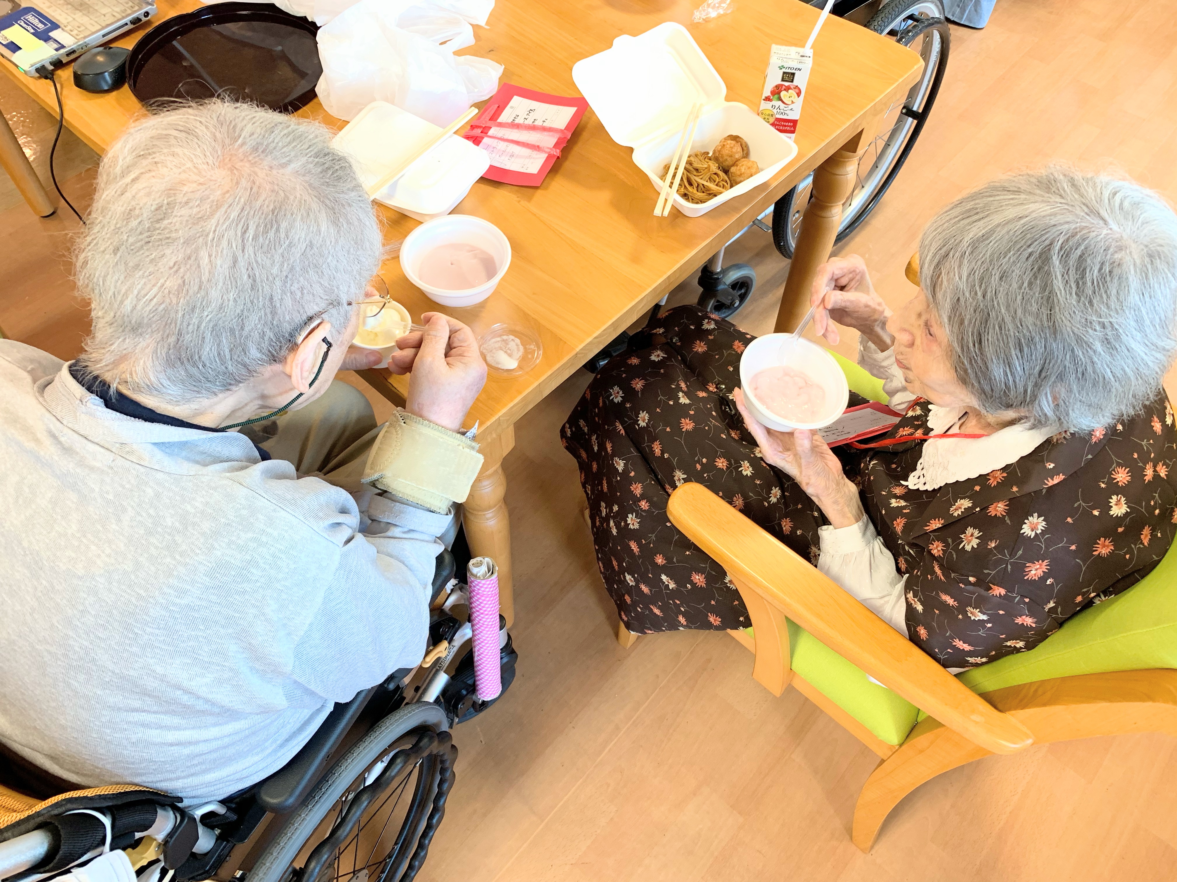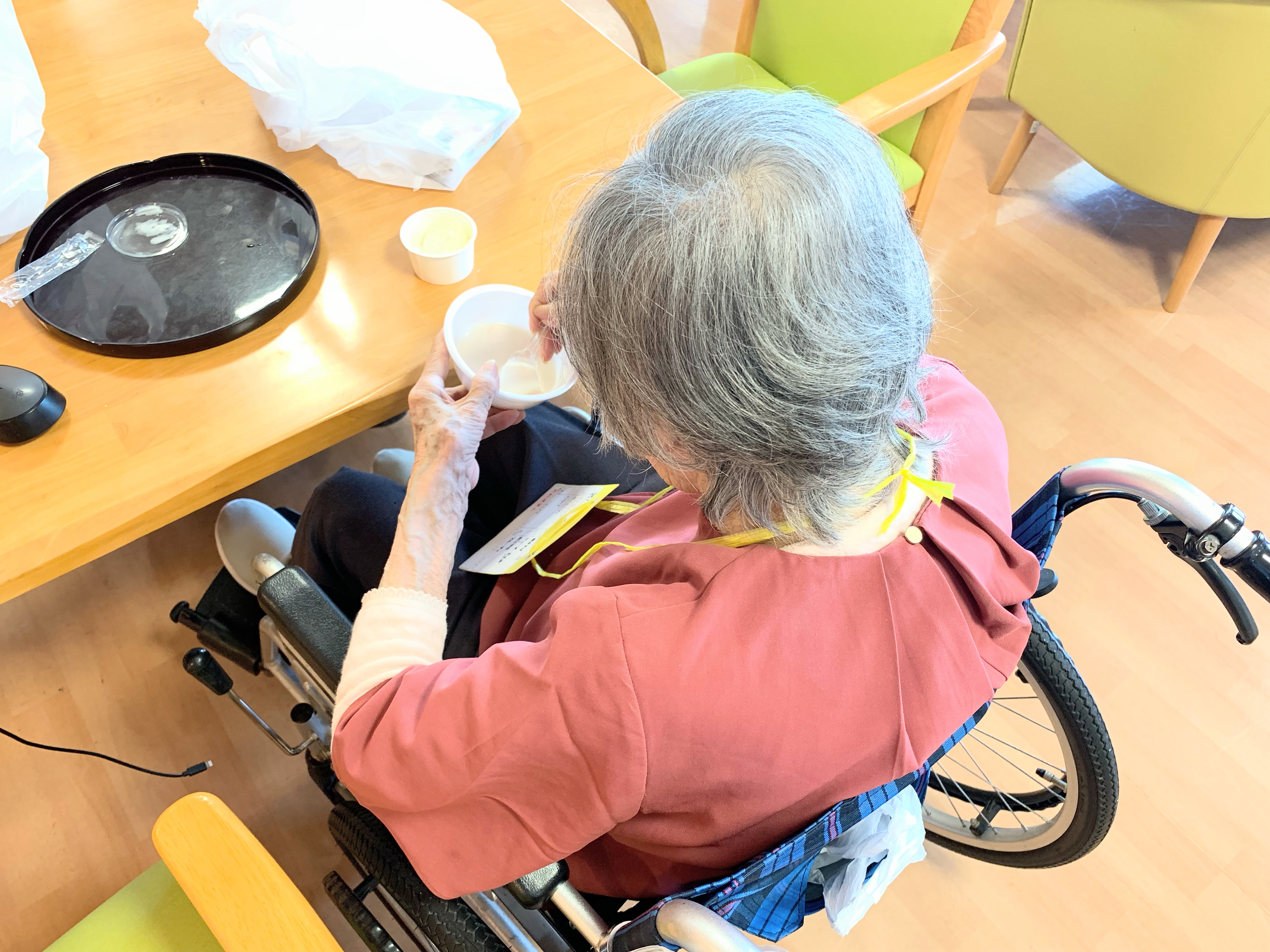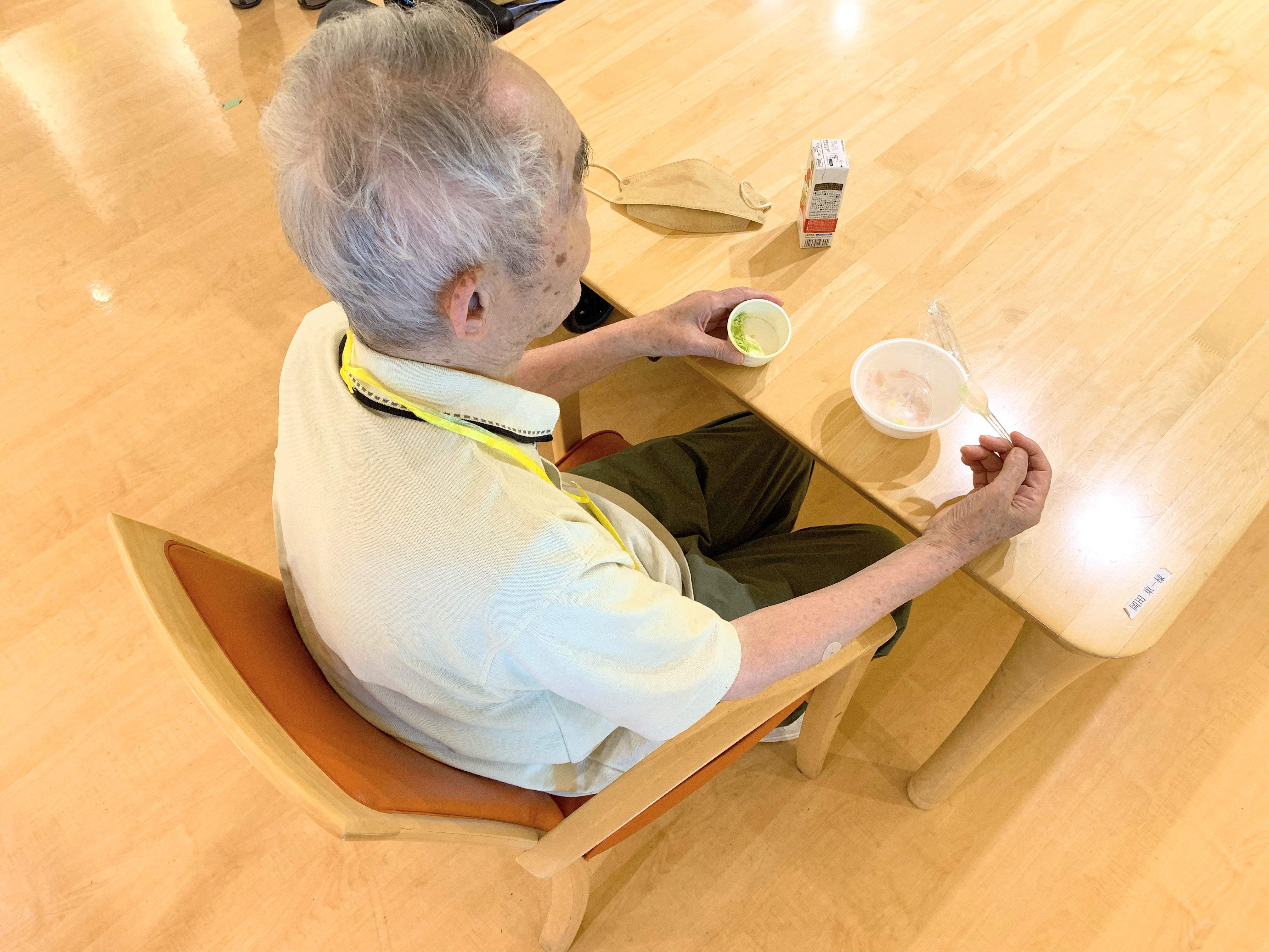 こんにちは、シーハーツ柏です。9月最初の日曜日。訳あって、今週もフルーツイベントです。しかし、甘い物は皆さんお好きなようで、大歓迎という雰囲気でした (笑) 普段の食事では、ペースダウンしがちな入居者様も、もぐもぐ、と咀嚼が進みます🍌 また、普段はテーブルが離れている入所者様同士が、身の上話や健康の話題など、話されていました。「Kさん、バナナは体にいいから普段の食事でも食べたほうがいいよ。」と声をかけたI様、それに対してK様は「体にいいのはわかるんだけど、あんまり好きじゃなくてね。よそってくれたから断るのも悪くて。」とざっくばらんにお話されていました。お二人は入居された時期が近いこともあり、気軽にお話ができる仲だったと今頃になって気がつきました。