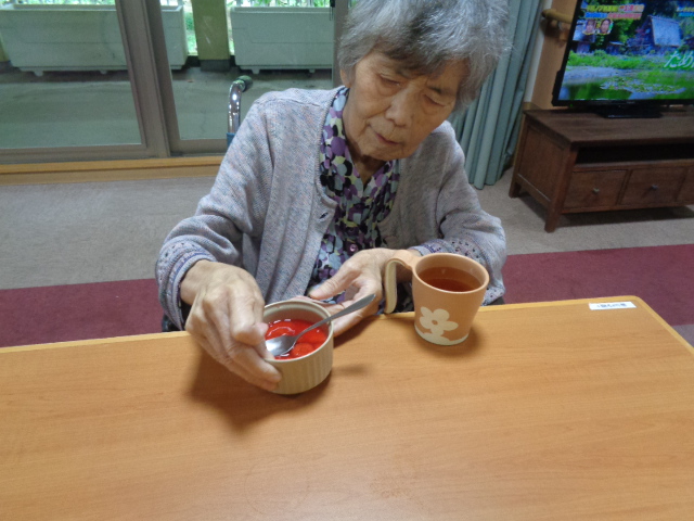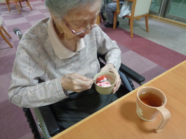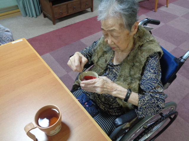 体操後には息を整えすっきりした表情で昼食を召し上がります🍚
