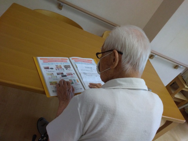 本日セブンイレブンのカタログを見ながら、商品を注文されている入居者様をパシャリ📷