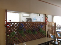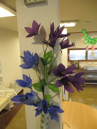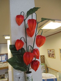施設内も秋の花のホオズキとリンドウが飾られています。