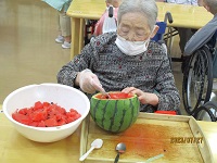 すいか割りをしたり、すいかをくり抜いてゼリーも作りましたね♪