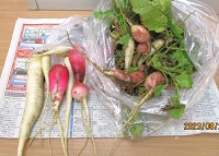 大きな朝顔の壁飾りを作ったり、畑で大根を収穫したり、