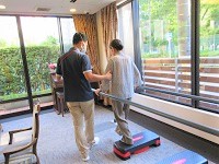 施設内は完全バリアフリーなので、あえて道具を使って障害物を作り