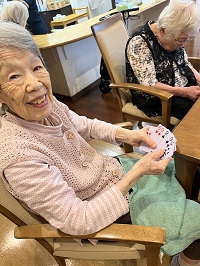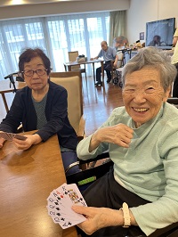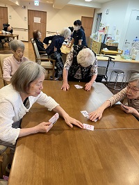 3階フロアへ伺ってみると、入居者様みんなでトランプを楽しまれていました(*´ω`*)