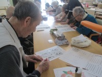 今日のレクはプリントを使った脳トレを行いました。二種類の間違い探し、足し算トーナメント、違う漢字はどこ?の脳トレにチャレンジしていただきました!違う漢字はどこ?では同じ漢字がたくさん並んでいる中に一文字だけ違う漢字がまぎれており、【祝】の漢字の中に【祈】・【福】の漢字の中に【幅】などよく目を凝らさないと見つからない問題でした。間違い探しでは給料日のイラストに「給料袋は今なかなか見ないね」「そろばんだったんだよね」など会話が聞こえてきました(*^^*) 早くに解ったご利用者様がお隣の席の方に教えてくださったりしている様子も見られました(^^♪