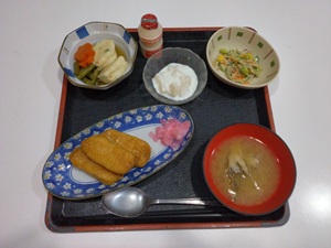やさしい甘さのいなり寿司に、ふんわりやわらかな白身魚と豆腐。豆や根菜で食感も楽しみながら、バランスよく仕上げました。皆様に「おいしいね」と笑顔で召し上がっていただける、心も体も温まる献立となりました。
