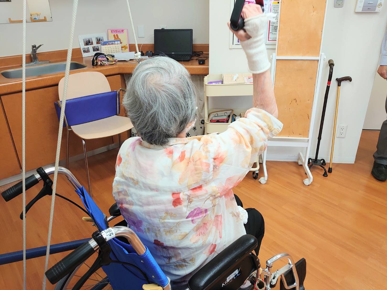 と、その前に悩んでいる入居者様の写真