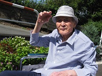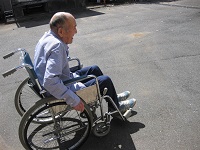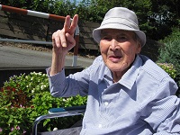 外気浴に外へ出かけた入居者様でしたが、暑すぎて帽子を被りました(^o^)