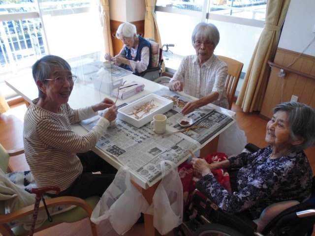 入居者様たちがささげ豆を一生懸命むいて下さいました(^^♪