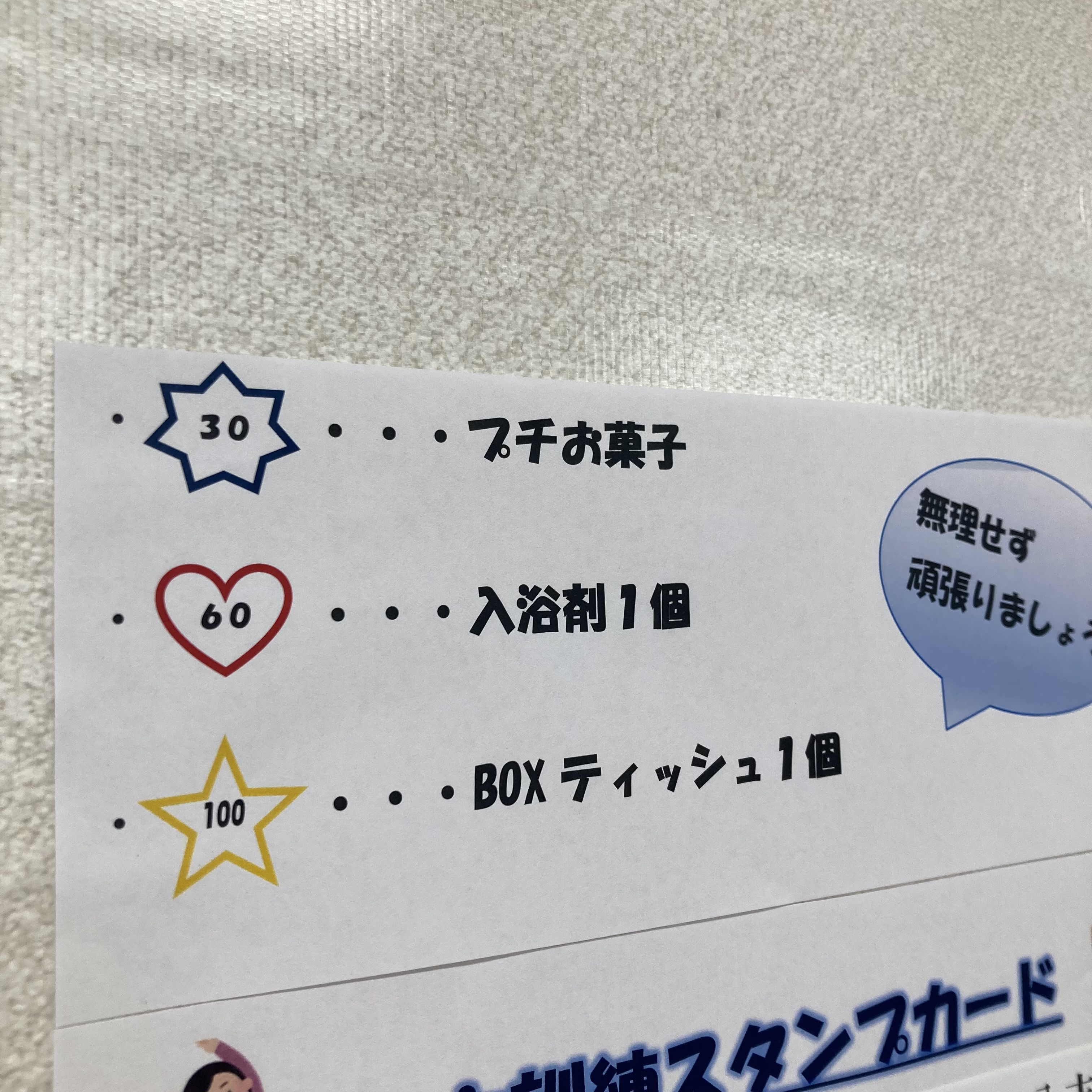 まずはスタンプ30個のプチお菓子を目指して皆頑張っています😊