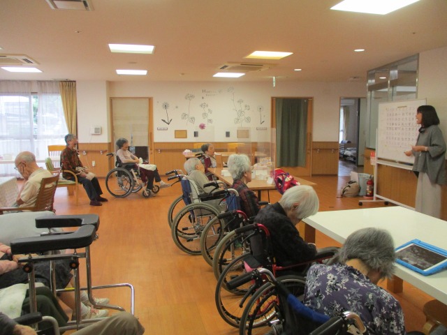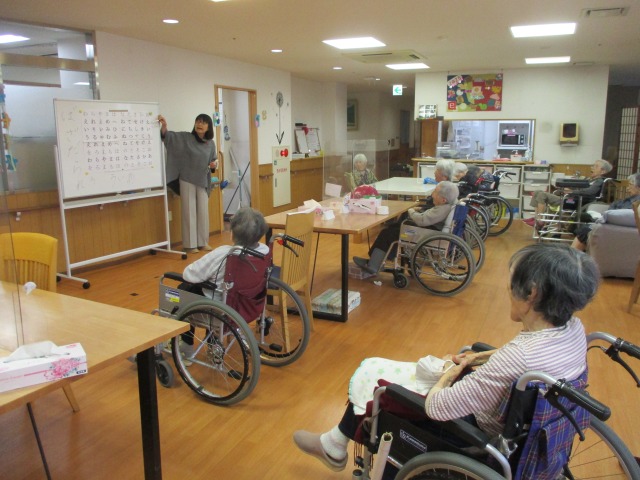 今日は月に一度の【朗読会】の日です(*’▽’)皆様、一同に集合してくださいました🌟おひとり、おひとりしっかりと詩を朗読されており、読み終えた後は拍手が起こっていました👏皆様、すばらしい\(^o^)/最後は手遊び唄で終わりましたが、今日の手遊び唄は難易度が高くスタッフは出来ませんでしたとさ…( ̄▽ ̄;)