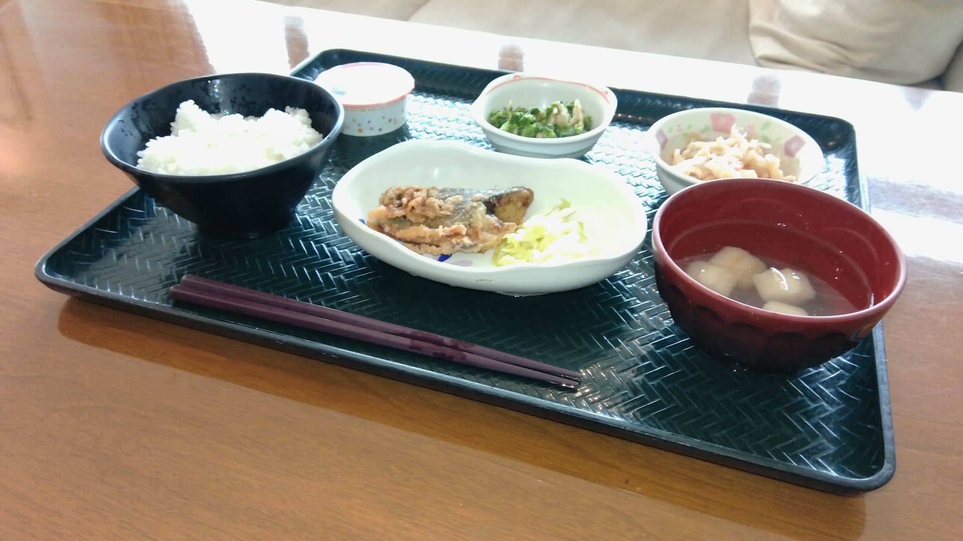 今日の昼食はあじの竜田揚げです!