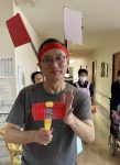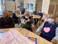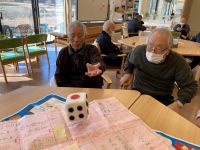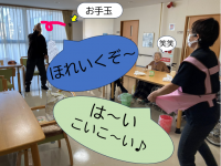 立ち上がってお手玉を投げる姿がおもしろく、周りの利用者様も