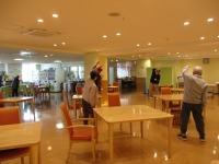火元は厨房。発見から消火をし入居者様の避難をしました。