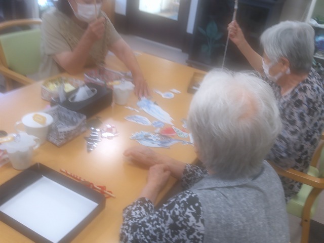 魚釣りのレクリエーションの様子を