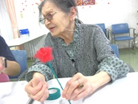 赤いリボンで作ったら、きれいなバラが完成しましたよ☆