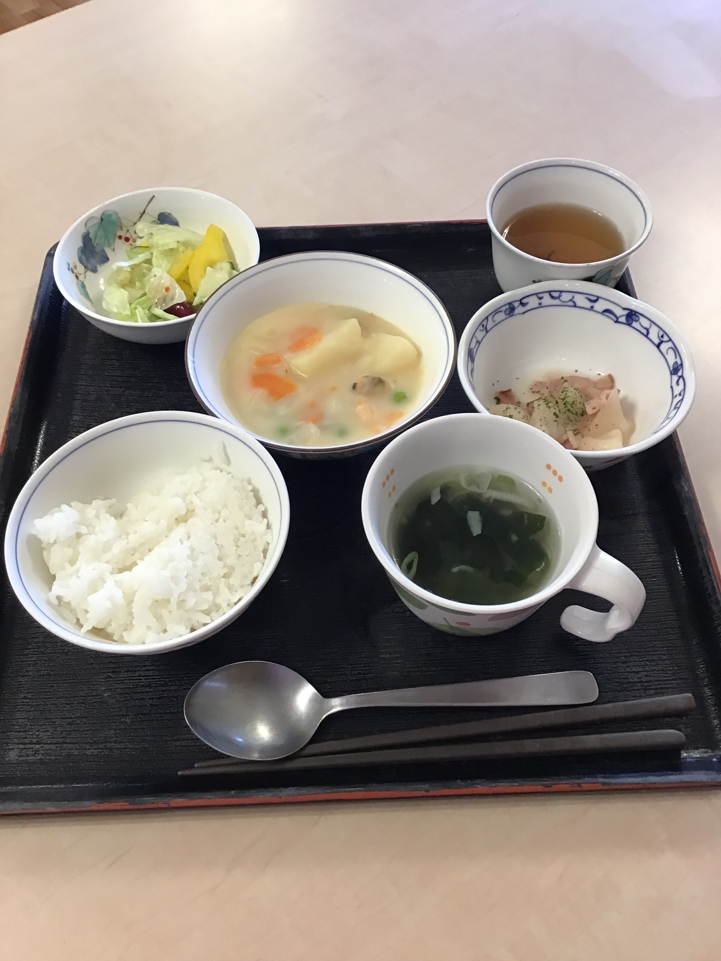 献立のメニューは、シーフードシチューとかぶとベーコンのコンソメ煮、イタリアンサラダです。