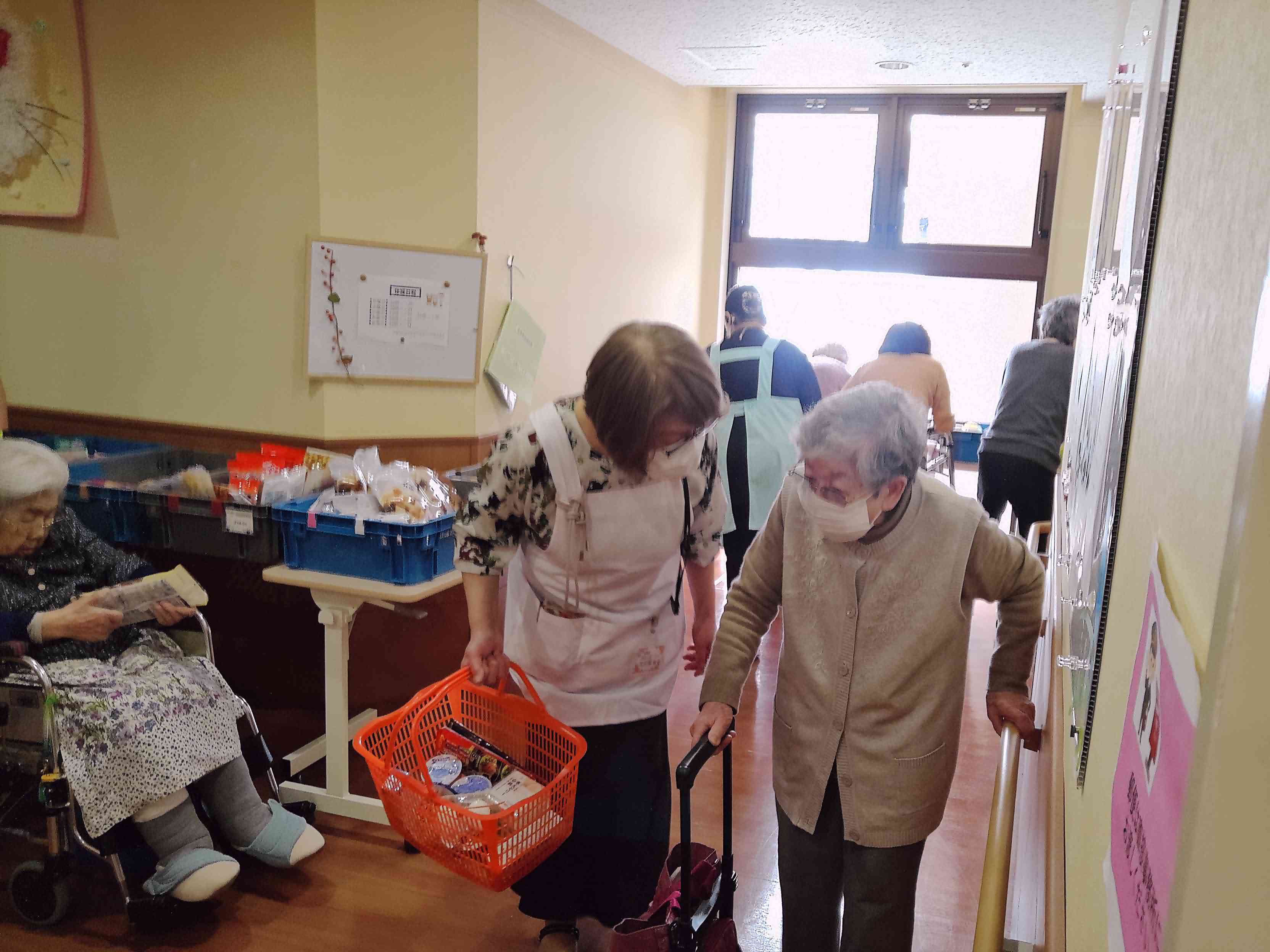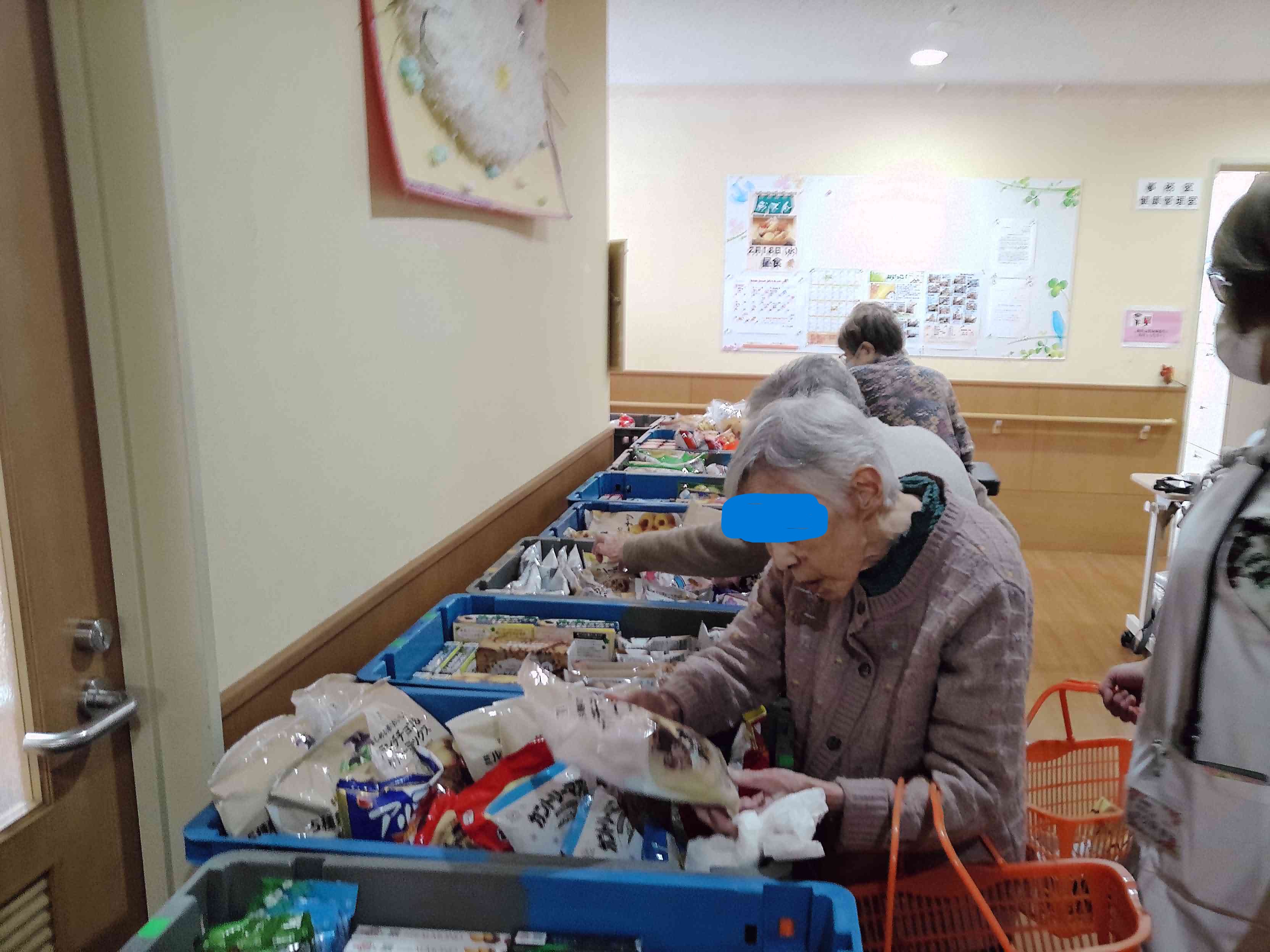 入居者様によってはスタッフもお買い物のお手伝いをするのですが、そのスタッフの数も上乗せされいつもながらに大混雑です(笑)