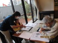 本日、習字をご入居者様と一緒に行いました。プロレベルのご入居者様もおり、真剣に楽しまれておりました。