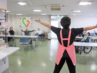 昼食の前にはホールに集まって体操と嚥下体操をしています♪