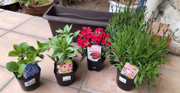第一弾として、アルストロメリア、矢車草、アジサイ、ネメシアの苗を準備しました。