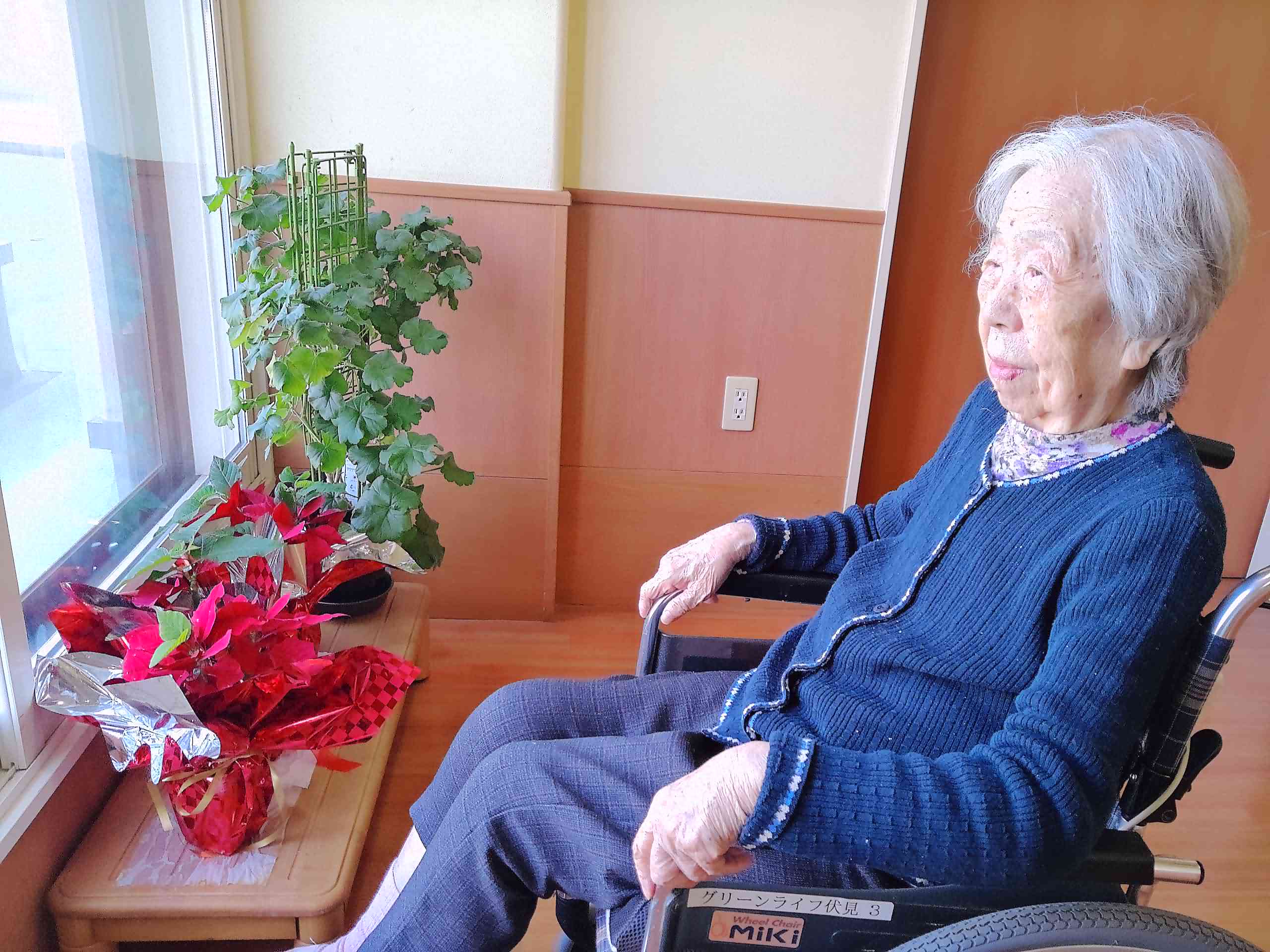 今回は菊で丸くまとめられていますが菊といっても沢山の種類があります。先生曰く、お彼岸でお花屋さんも菊のお花が多いのでそれなら菊でまとめてみようと考えたそうです。ご入居者様、ご家族様も色々な発想があって素晴らしいと感心されていました。