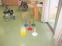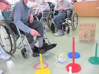 勢いをつけて投げる輪投げは、車椅子にのったままだと、意外と難しいんですよね。