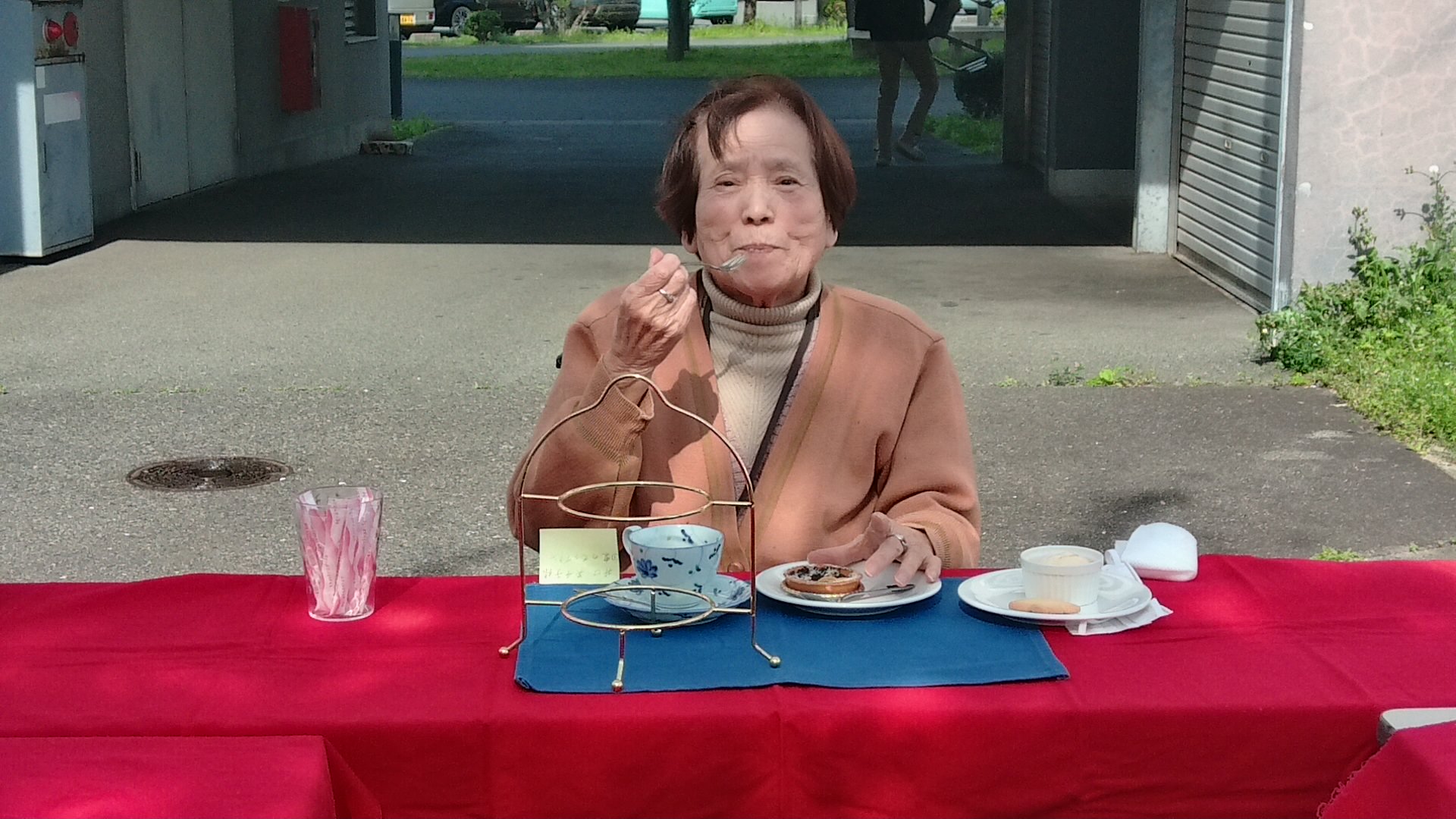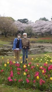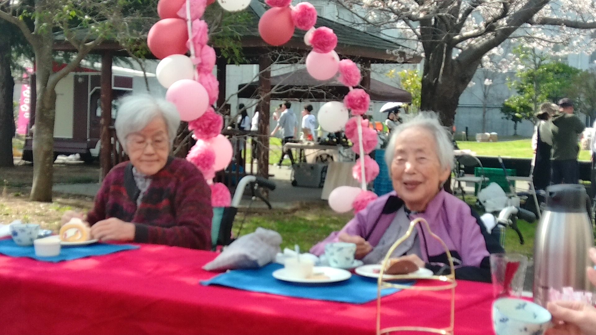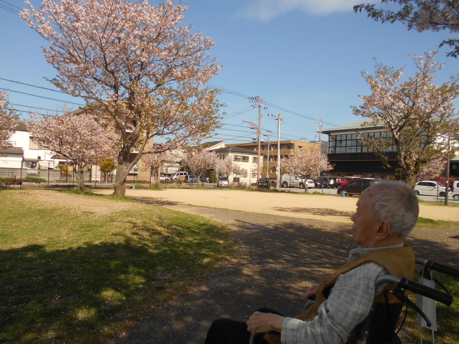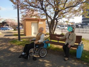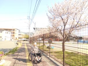 外の空気を吸い桜を見て大変喜ばれていました。お散歩は毎日行います。