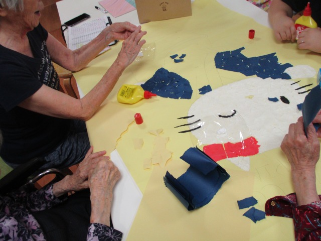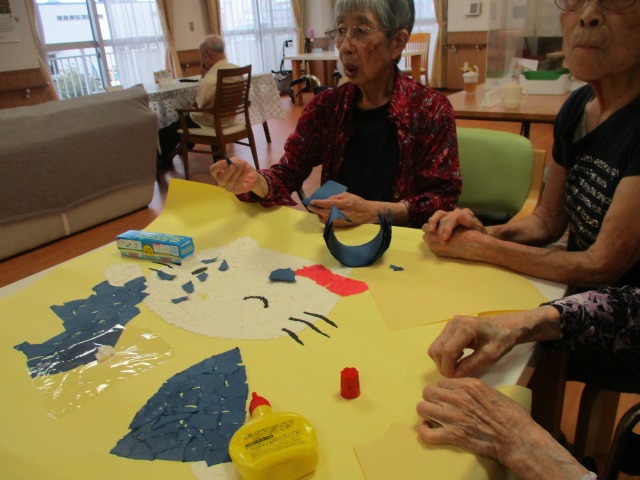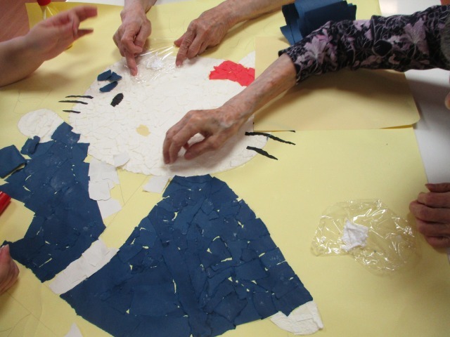 今日の午後、皆様集まって何やら楽しい雰囲気で何かを作っておられました(^^♪よ~く見てみると皆様ご存じのあの有名キャラクター(・・?と~ってもきれいに貼り付けてくださっていました‼何が出来るのでしょうか❔完成が楽しみです(⋈◍>◡<◍)。✧♡