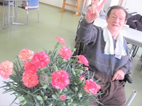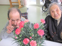 「このお花みんなに見てもらいたいからここに(食堂に)置いといてもいいかしら?でもお部屋に持っていって眺めたいな…。でも部屋に置いといたら自分しか見ないな…。それはもったいないな…。みんなにも見て欲しいな…。娘がせっかく送ってくれてこんなに綺麗だし…。」