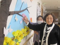 こんにちはデイサービスです。今日のレクは、制作でお花紙で桜のお花を貼り付けて頂きました(*^^)v お花紙を開くのが少し大変そうでしたが、皆様集中して取り組んでいました。デイルームの壁面が寂しい感じでしたが、一気に桜で満開になりました(*^-^*) 本物の桜は、いつ満開になるのか楽しみですね☺