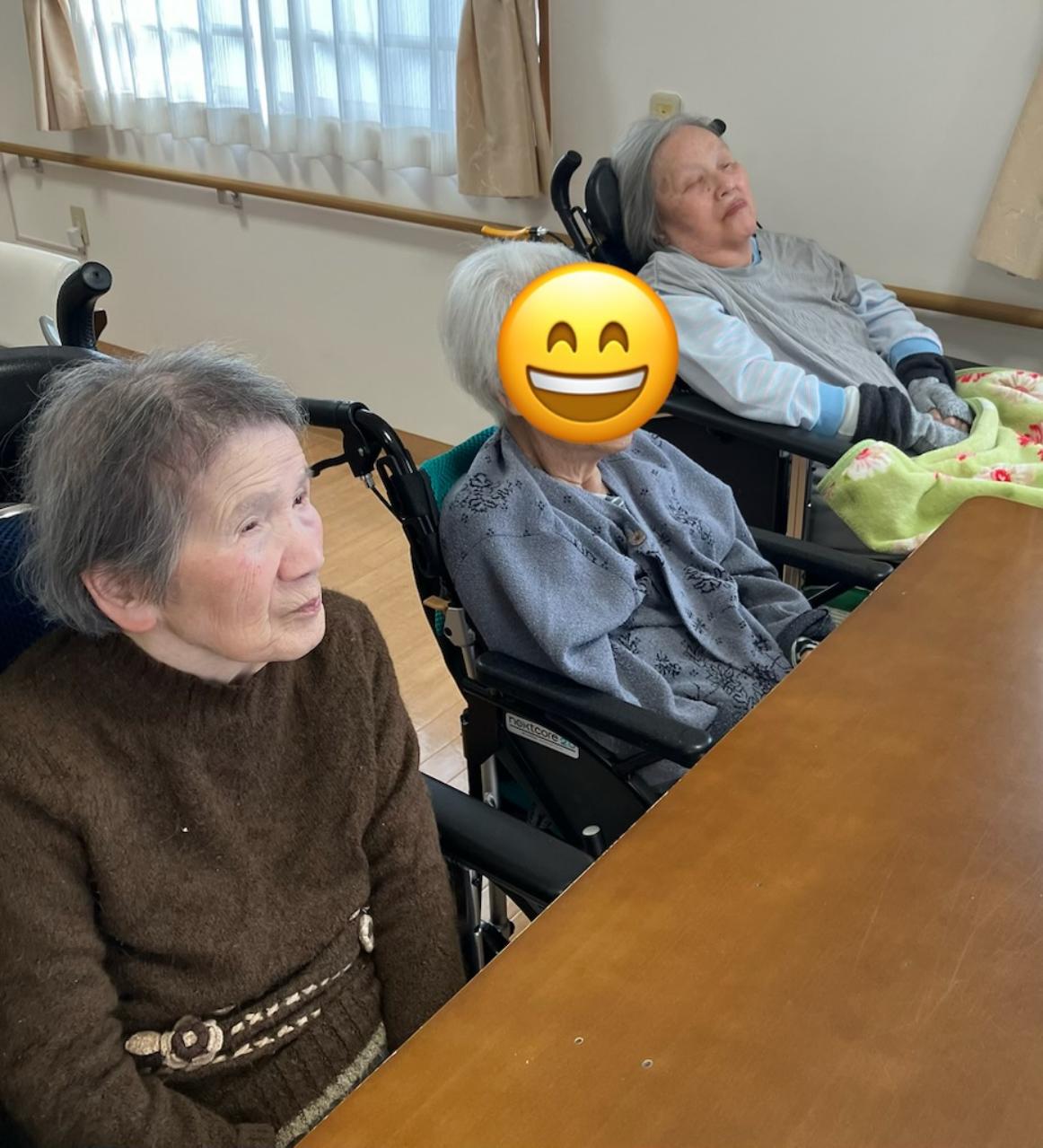 今日の話題は昨日東京で🌸の開花発表があった桜でした。桜にちなんだ歌を唄い、その後はハンドベル、鳴子、鈴を持って身体も動かしながら楽しく歌っていました。楽しい時間はあっという間に過ぎてしまいますが笑顔いっぱいの音楽療法でした(^^♪