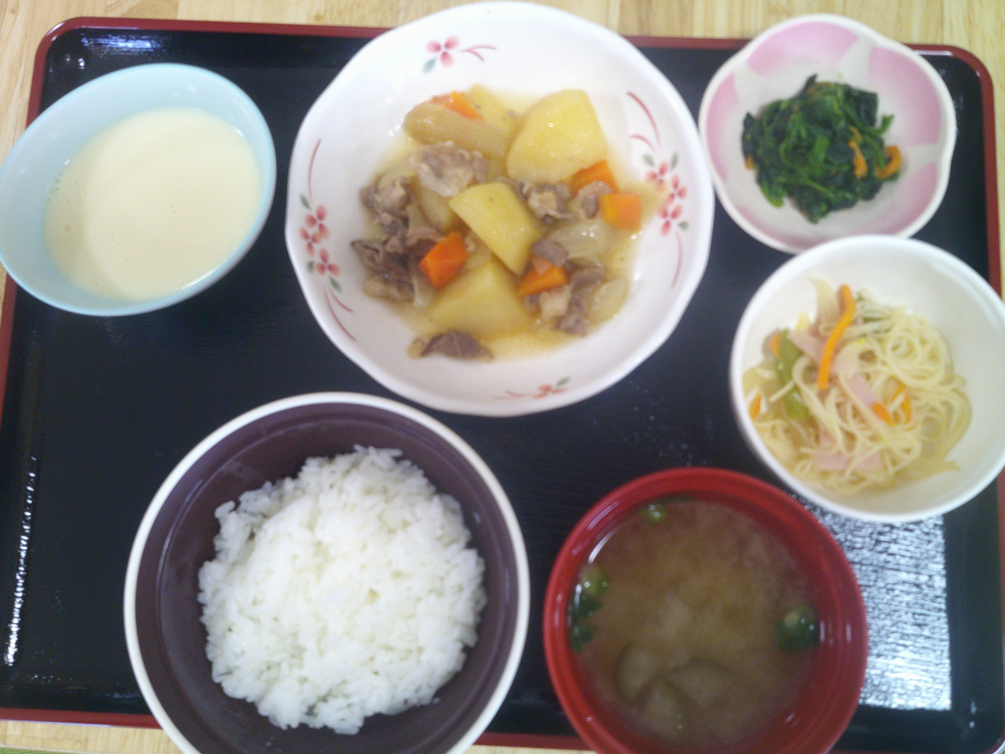 牛乳も一緒に、栄養バランスのとれた献立となりました。皆さん「美味しいね」と笑顔で召し上がっておられ、和やかなひとときとなりました。