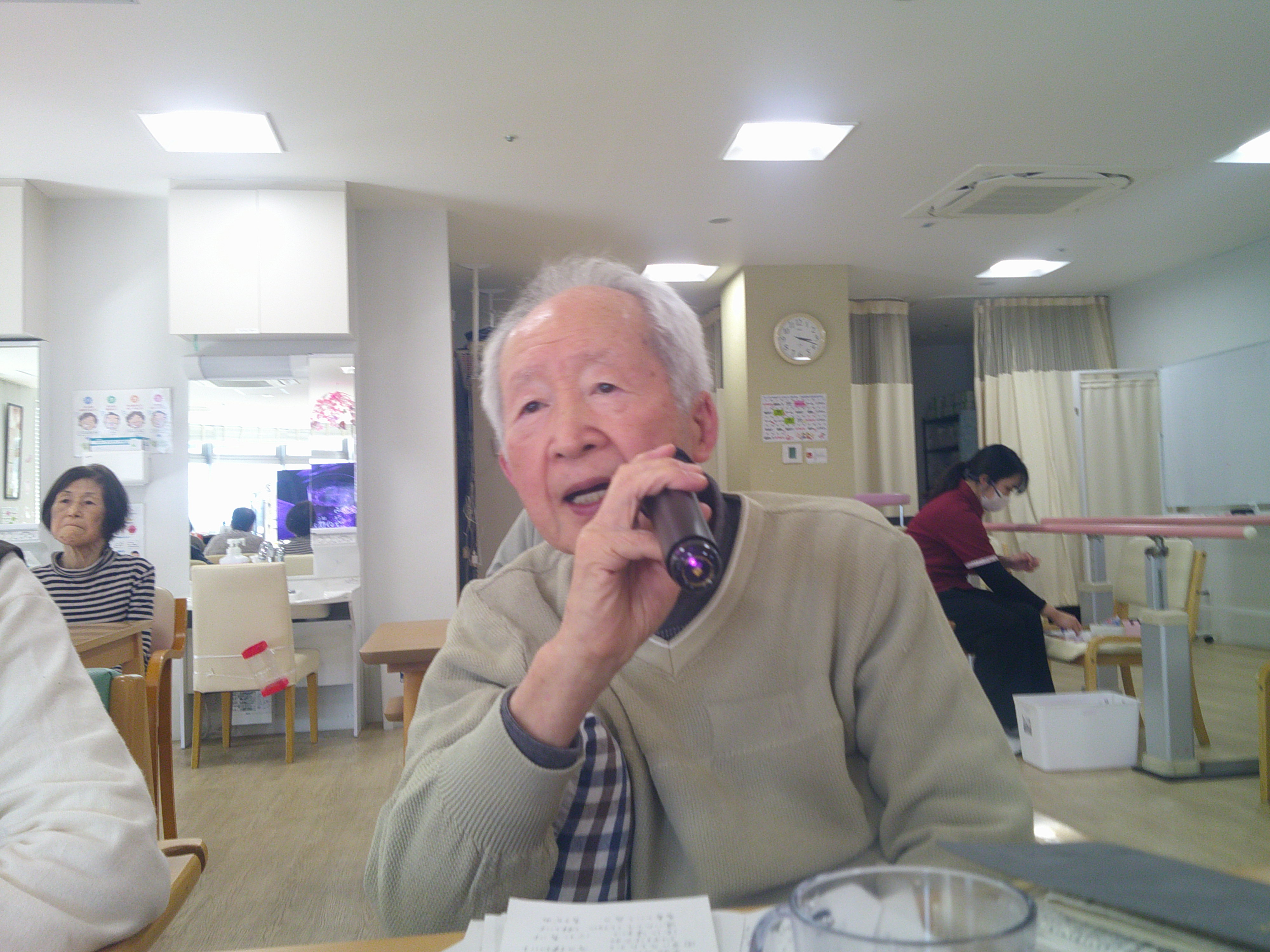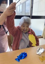 今日は、「モグラたたきゲーム」を皆様に楽しんで頂きました。紙コップにモグラの絵を書き、それを棒でかぶせていきます。早い方は、あっという間に20匹のモグラをかぶせていきます。優勝決定戦は、女性同士の対戦となりました。火花バチバチ。僅差というよりも同点に近い速さで、両者優勝です!!皆様で楽しい時間となりました(^-^)